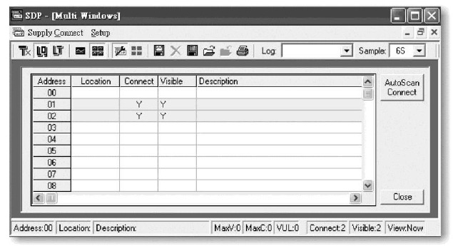 4. Click on AutoScan Connect, the window will show the connected power supply indicated with “Y”.