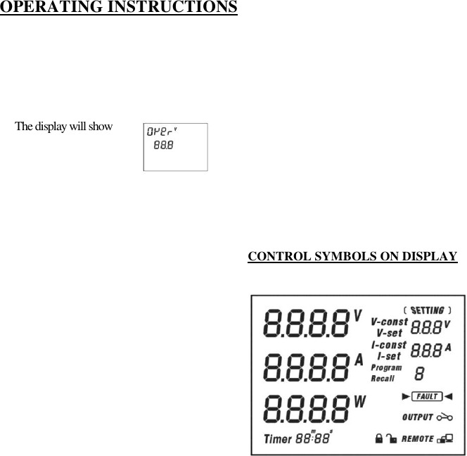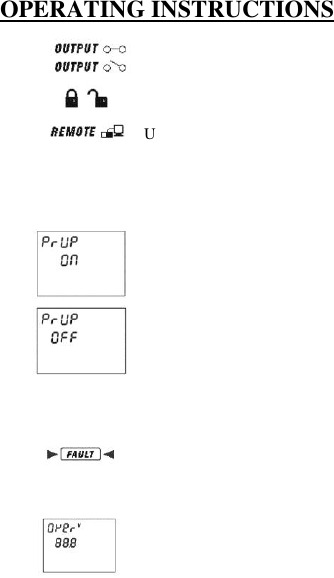 2. This unit has a built-in Tracking O.V.P. (Over Voltage Protection) feature. In the event of the output voltage becoming 10% greater than the set