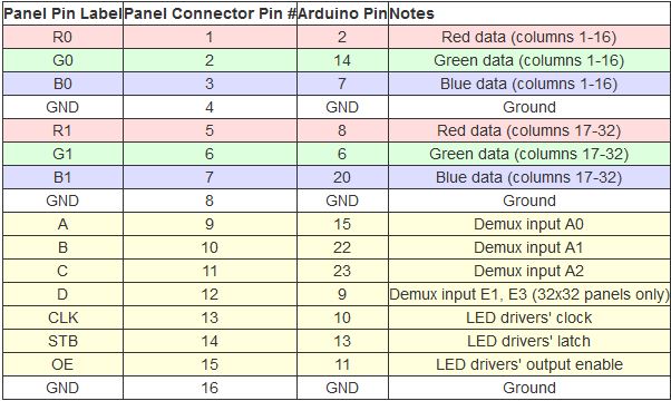 Here are the pin connections between LED panel connector and the Teensey 3.1: