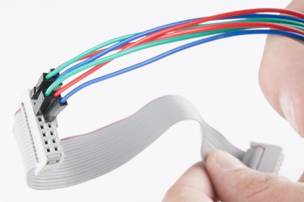 When connecting into the ribbon cable connector, pay attention to the notch that signifies polarity. When looking at the cable with the notch facing up and on the left side, R0 (pin 1) should be at the top left.